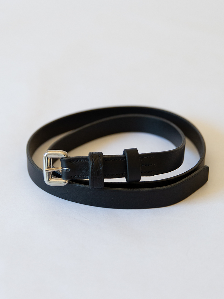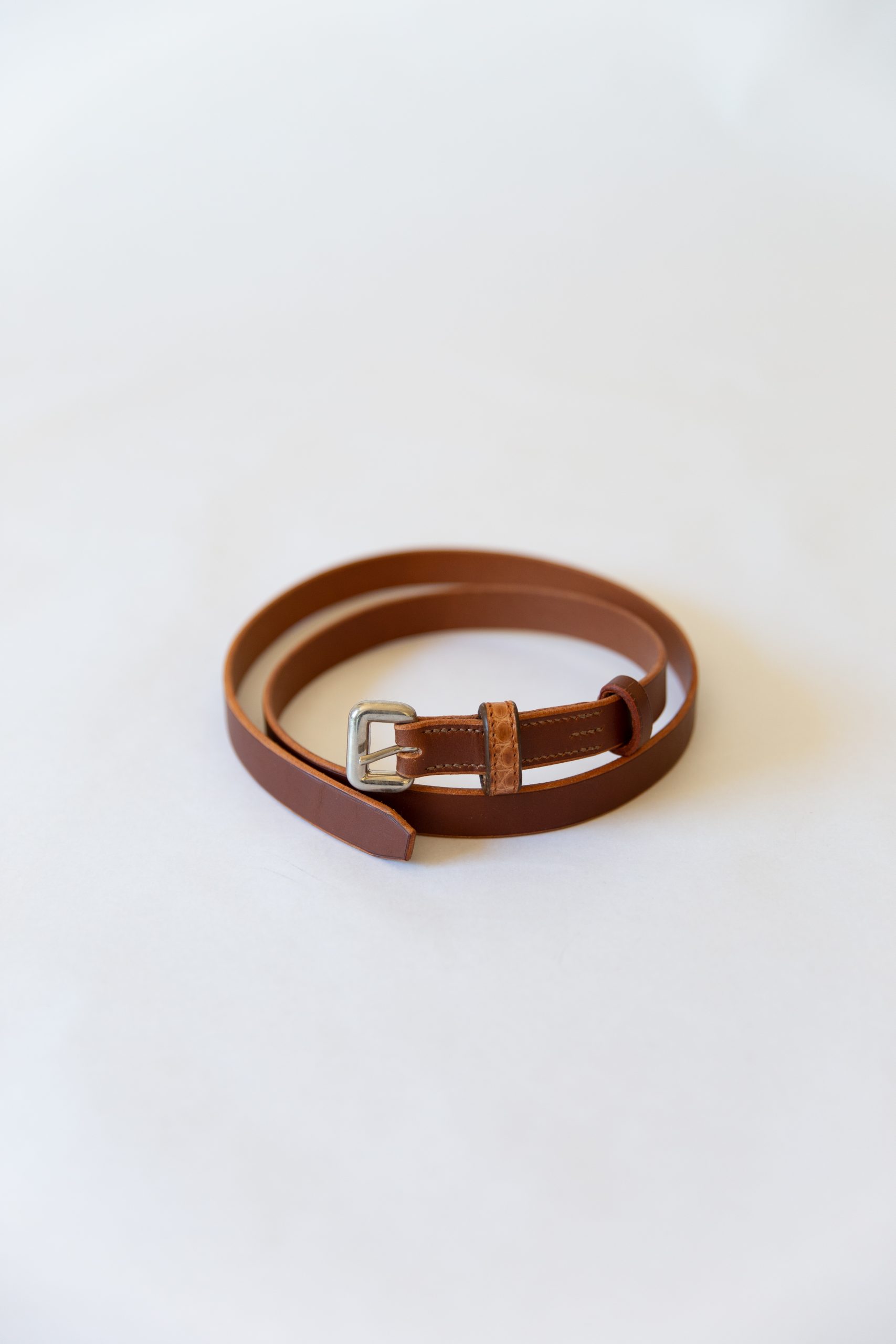 Ceinture fine en cuir de sellerie, cousue main.