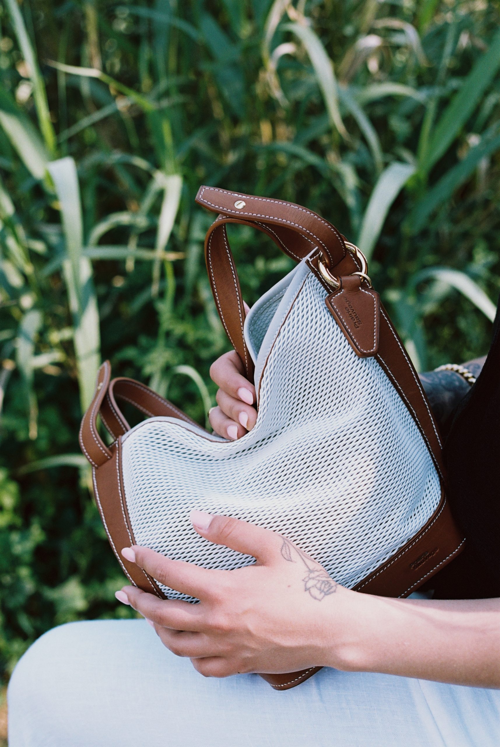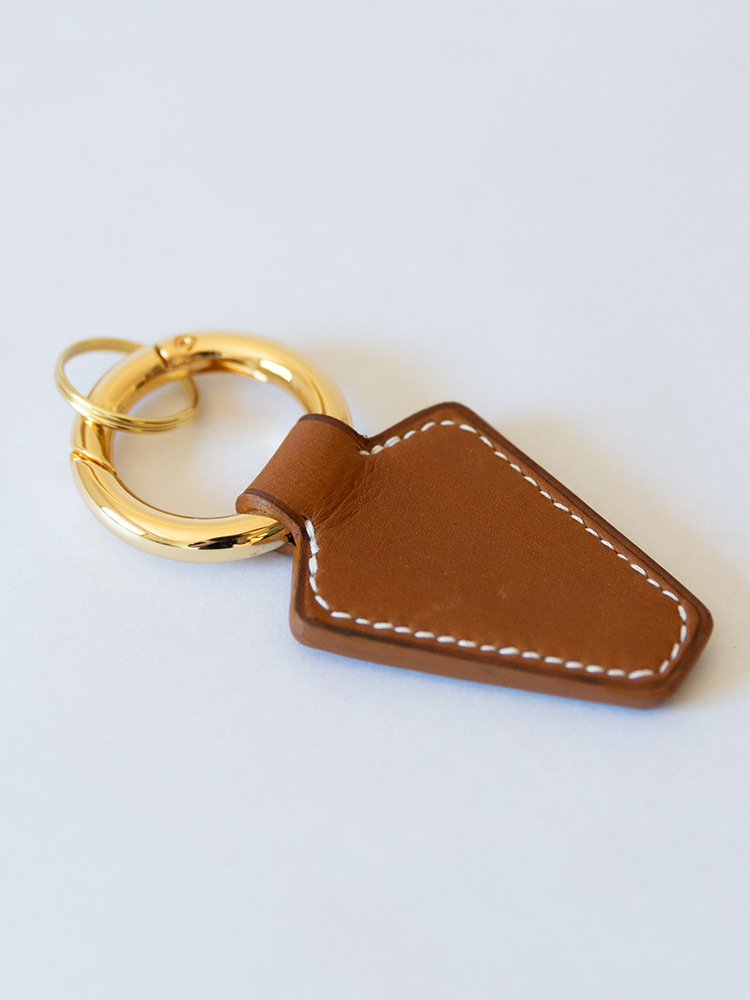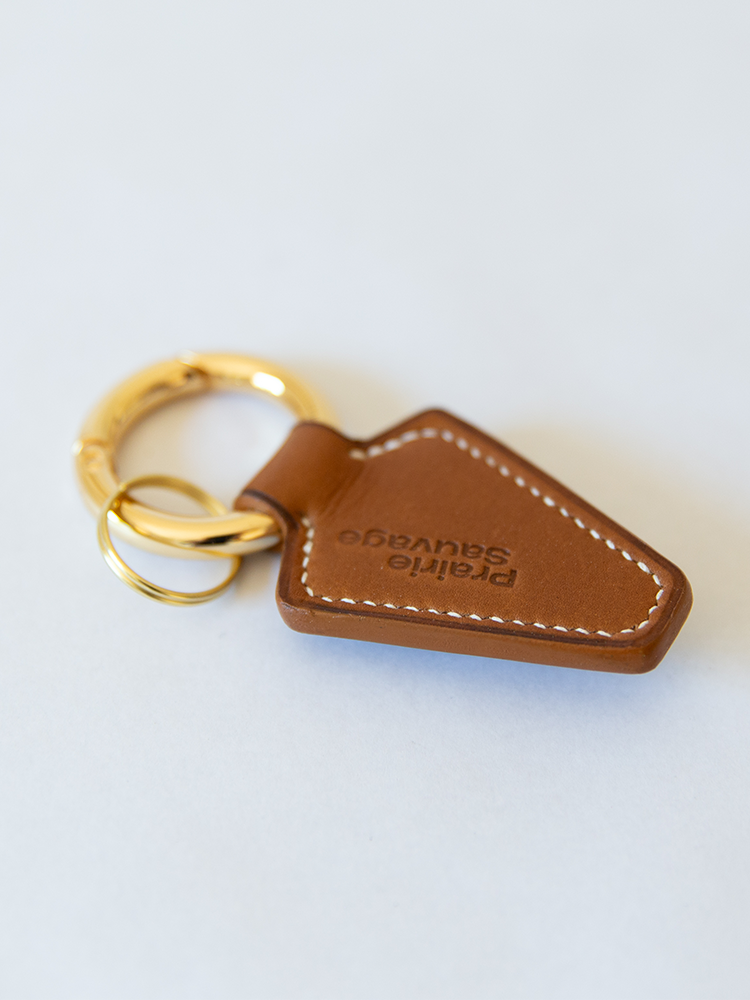 Porte-clefs ou bijoux de sac, cet objet reprend une forme signature que l’on retrouve sur le sac Aubépine. Il s’inscrit dans une continuité formelle. Plus qu’un simple accessoire, il devient un écho discret à l’identité de la marque. Ici en toute simplicité avec une marque à chaud Prairie Sauvage.